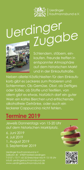 Schlendern, stöbern, einkaufen oder Freunde treffen in entspannter Atmosphäre auf dem historischen Marktplatz und der Uerdinger Innenstadt.